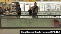 Пустуют не только прилавки, но и целые отделы. Вероятно, в «Ашане», как и в других крымских супермаркетов, испытывают трудности с доставкой товаров.