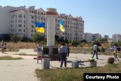 В Севастополе отпраздновать День Независимости вышли 8 человек, в том числе Неганов. Активисты собрались под тумбой, где когда-то стоял памятник гетману Сагайдачному.