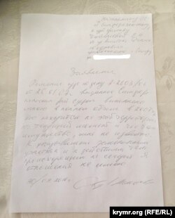 По его словам, он явился по указанному в извещении адресу. Сотрудникам ведомства объяснил ситуацию, после чего оставил письменное заявление. В нем Аметов указал, что указанное решение, вынесенное 25 января 2007 года Симферопольским районным судом, было выполнено им в полном объеме еще семь лет назад. «Кто находится на этой территории на текущий момент и чье там имущество, мне неизвестно. К указываемым земельным участкам и к действиям там происходящим на сегодня я отношения не имею», – написал Даниял Аметов в заявлении.