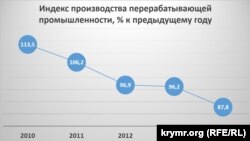 На протяжении последних пяти лет в Крыму наблюдался спад промышленного производства. Однако темпы падения в 2014 году существенно увеличились – по сравнению с 2013 годом на целых 10%.