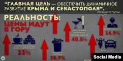 Экономика полуострова за год претерпела существенные изменения. Торговые связи с Украиной стремительно разрушались. Учитывая, что более 90% товаров поставлялось именно с материковой Украины, новые границы заметно повлияли на цены в Крыму.