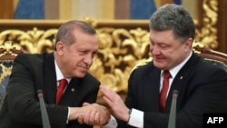 Киев – Турция предоставила Украине финансовую помощь и поддержала идею ввести миротворцев ООН на Донбасс. О таких результатах встречи с турецким главой государства сообщил президент Украины Петр Порошенко. Встреча обоих лидеров тет-а-тет, которая длилась гораздо дольше, чем планировалось, имела отношение к вопросу Крыма и крымских татар, считают политологи. Некоторые же эксперты говорят о том, что визит Эрдогана свидетельствует не столько об изменении позиции Турции на более проукраинскую, как об амбициях этой страны увеличить свое влияние в регионе.