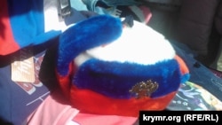 Не менее выдающийся экземпляр – шапка-ушанка. Цена – 700 рублей. Сшита по всем канонам классической ушанки, но отличается набившей оскомину цветовой гаммой. На «фасаде» красуется двуглавый орел.