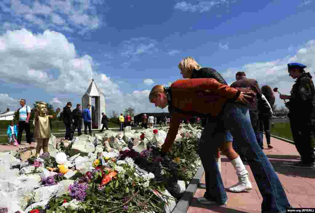 8 мая в поселке Мирном под Симферополем торжественно открыли мемориал, посвященный памяти жертв концлагеря «Красный», в котором гитлеровцы во время оккупации Крыма уничтожили больше 15 тысяч советских патриотов. В эти дни в музее проводится свободное посещение всех объектов и бесплатные экскурсии, постоянно демонстрируется фильм о годах войны. За несколько дней мемориал посетили несколько тысяч человек. Они возлагают цветы к вечному огню, звонят в колокол памяти, кладут игрушки к подножию скульптуры «золотой девочки» – памятника всем детям. погибшим в концлагере.