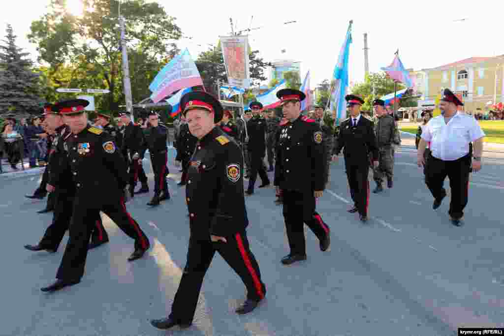 От площади Куйбышева до памятника Ленину состоялось шествие, в котором приняли участие представители политической партии «Единая Россия», работники предприятий города, воспитанники различных творческих объединений и спортивных секций, а также крымские казаки. Затем на площади Ленина прошел концерт.
