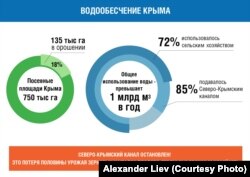 Еще в 2012 году был принят проект по восстановлению орошения сельхозземель после того, как с 1991 по 1998 годы эта система пришла в негодность. Называлась эта госпрограмма «Вода Крыма», и рассчитана она была на 2013-2020 годы. На ее реализацию планировалось выделить 4,7 миллиарда гривен, из них 2,3 миллиарда – из госбюджета Украины.