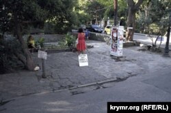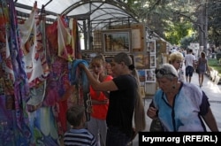 А это – знаменитый рынок художников на Пушкинской. Здесь круглый год местные и приезжие художники продают картины. Ну, и заодно, все красивое, что делается руками – керамику, набивные ткани, украшения из дерева, литье, ковку – в общем, все. Очень хорошая и добрая традиция, одна из немногих, позволяющая крымчанам почувствовать, что все-таки до Европы отсюда ближе, чем до Сибири или Китая.
