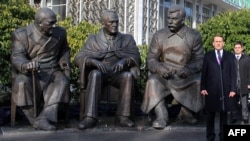 Этот памятник участникам заключения Ялтинских соглашений 1945 года – Иосифу Сталину, Франклину Рузвельту и Уинстону Черчиллю – авторам биполярного мироустройства, который просуществовал вплоть до начала 1990-х годов и рухнул вместе с СССР, – еще раз напомнил всем нам о том, сколь зыбкими являются категории свободы и демократии – те ценности, которые постоянно приходится отстаивать в борьбе с тиранией и несправедливостью…