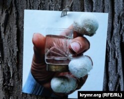 В Симферополе состоялась необычная фотовыставка известного крымского фотографа Александра Кадникова. Для этого ему и его единомышленникам не понадобилось получать разрешение начальства или решение худсовета – снимки были приколоты обычными столовыми вилками прямо к стволам деревьев в одном из городских парков, а зрителями могли быть все прохожие.