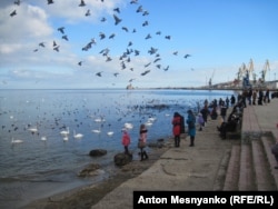 Действительно, особняк XIX века в самом центре города с фасадом, выходящим на набережную, больше подходит для приема экскурсионных групп, чем рожениц. Впрочем, в разгар зимы наплыва туристов нет – в музейных залах тихо и безлюдно. Местные жители поглядеть на древности не заходят. В погожий день весь город собирается на набережной кормить лебедей и чаек, зимующих у феодосийских берегов.