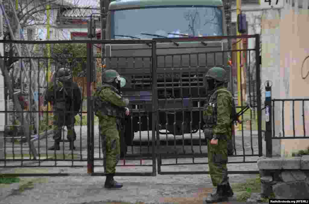 Ко второй годовщине российской аннексии украинского полуострова Крым.Реалии публикуют архивные фото, на которых видно, как проходила оккупация Крыма и как его жители ей сопротивлялись. 4 марта 2014 года. Вооруженные российские военные продолжают находиться на улицах Симферополя. В частности, два автомобиля и около 60 военнослужащих из автоматами и ручными пулеметами находятся на тротуаре и во дворе жилого дома на улице Карла Маркса в центре города. Они стоят в 50 метрах от КПП штаба Войск береговой охраны ВМС Украины. Российские военные не вступают в контакт с местным населением. На вопрос журналистов, когда домой - не отвечают, во время фотографирования поворачиваются спиной.