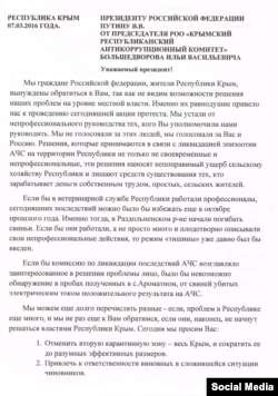 Он направил письмо президенту России Владимиру Путину с просьбой отреагировать на ситуацию.