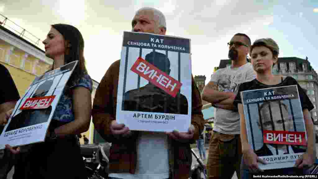 На Почтовой площади в Киеве прошла акция, посвященная годовщине суда над крымчанами Олегом Сенцовым и Александром Кольченко. 25 августа 2015 года российским судом был вынесен приговор, согласно которому Сенцову присудили 20 лет лишения свободы в исправительной колонии строгого режима, а Кольченко – 10 лет. На акцию в украинской столице активисты принесли фотографии российских чиновников, которых считают причастными к сфабрикованному делу. В конце мероприятия портреты заклеили лентами с надписью «Виновен». В акции приняли участие бывший политзаключенный Геннадий Афанасьев, сестра Олега Сенцова Наталья Каплан и российский адвокат Илья Новиков.