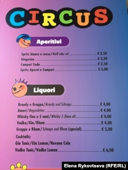 В Италии, которая обожает своих бамбини, в которой вся курортная инфраструктура подчинена детям, взрослым тоже кое-что перепадает. Эта инфраструктура необыкновенно добра к тем из них, которые должны присматривать за своими малышами. Великая вещь, к примеру, мелкий бассейн при пляжном баре. Вы пьете свое пиво и болтаете со своим супругом, пока ваш ребенок в двух метрах от вас плещется в водичке. И так можно кайфовать часами. Там вообще нет этой дури: ох! ах! нельзя! алкоголь! ближе ста метров! к детским заведениям! И пр. Вот. Смотрите. Это меню кафе с детским названием в детском парке, в котором очень правильный выбор напитков для взрослых.