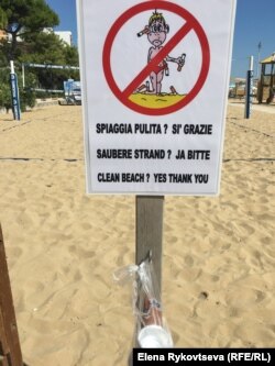 В Италии при любом пляже бесплатные души, куча всяких краников для ног, а главное – чистенькие туалеты. Я впервые увидела такое объявление: мойте ноги перед тем, как войти в это святое место общего пользования. Представляете. Мойте руки перед едой, а ноги перед туалетом. Нечего тащить туда песок. Моют, не тащат.