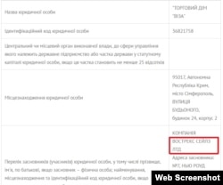 Последняя владела крымской «Визой» еще до российской аннексии Крыма. На данный момент ДП «Торговый дом «Виза», ранее зарегистрированное в «городе Симферополь, Автономной Республике Крым, Украина», значится в украинском реестре как действующее предприятие – субъект свободной экономической зоны «Крым».