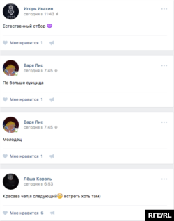 Большинство подростков, которые играют или хотели бы играть в "синего кита", написали, что кончать с собой они вовсе не собираются, им "стало интересно", другие решили "постебаться над кураторами", но некоторые воспринимают игру серьезно: "Ваша статья будет стоить мне жизни, потому что в конце этой игры человек умирает", – написала одна из девушек. "Вы хотите умереть?" – спросил ее корреспондент Радио Свобода. "Да", – ответила она (продолжить разговор не получилось, потому что страницу девушки заблокировали).