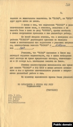 МГБ отслеживает и личную переписку «Тараса». Так, из писем Богдана Сташинского к родителям видно, что он убеждает их не поддерживать «самостийну» и подполье. Иначе, как пишет Сташинский, он уже второй раз не сможет спасти родных от «тюрьмы».