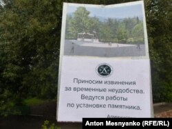 Снос проводили как будто бы впопыхах, без какого-либо обсуждения с местными жителями. Импровизированная стройплощадка ничем не огорожена. Отсутствует и положенный в таких случаях паспорт объекта с указанием вида, сроков и исполнителей работ. Непосредственно на том месте, где, по всей видимости, будет располагаться памятник предпоследнему монарху, стоит покосившаяся табличка со словами "Приносим извинения за временные неудобства. Ведутся работы по установке памятника". Монумент, судя по прилагаемой иллюстрации, будет иметь внушительные габариты – в три-четыре человеческих роста.