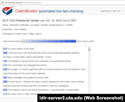 Или же ресурс ClaimBuster, который способен в прямом эфире расшифровывать выступления политиков и отмечать фразы, которые стоит проверить.