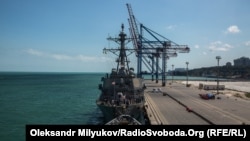 Оба боевых корабля ВМС США ‒ крейсер The Hue City и эсминец Carney (DDG-64) ‒ пришвартованы у причалов Одесского порта. Неподалеку морского вокзала Одессы впервые за 10 лет можно увидеть иностранную подводную лодку.