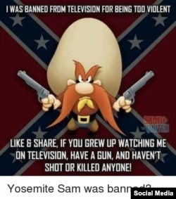 Рекордную для "фабрики" аудиторию собрал постинг в сообществе South United в защиту права на оружие. На картинке был изображен главный отрицательный персонаж мультсериала Йосемитский Сэм, славящийся своей любовью к револьверам. "Лайкни и поделись, – призывал Сэм, – если ты вырос на моих мультфильмах, у тебя есть пистолет и ты никого не застрелил и не убил!" Поводом для картинки стало сообщение о том, что Сэм запрещен на американском телевидении за свою чрезмерную агрессивность – сообщение, как выяснилось, ложное. Это была модификация мема, созданного и опубликованного сообществом "Неполиткорректная Америка". Различие состояло в том, что на картинке South United Сэм был изображен на фоне флага Конфедерации.