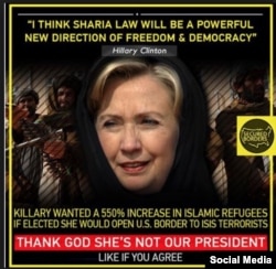 Хиллари хотела увеличить на 550 процентов число исламских беженцев. Если она будет избрана, она откроет границы США для террористов ИГИЛ".