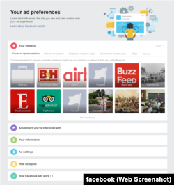 «Узнайте, что именно влияет на рекламные объявления, которые вы видите, и управляйте ими», ‒ предлагает социальная сеть.