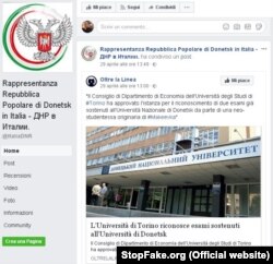 «Эта «новость» с большим пафосом была обнародована на Facebook-странице так называемого «представительства ДНР» и на других страницах, связанных с итальянскими правыми. Пост называется «Впервые в истории европейские и итальянские университеты признают документы учебных заведений республик Донбасса: это произошло в Университете Турина», ‒ пишет StopFake.org.