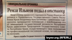 «Крымские известия» сообщают об отставке подконтрольного России вице-спикера Ремзи Ильясова. Он обратился к председателю крымского парламента Владимиру Константинову с заявлением о досрочном прекращении полномочий и освобождении его от замещаемой государственной должности, пишет издание со ссылкой на пресс-службу ведомства. О причинах отставки Ремзи Ильясова парламентская газета не сообщает.