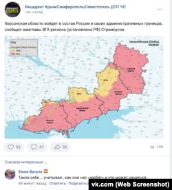 Провластные крымские паблики соцсети «Вконтакте» 20 сентября практически синхронно разместили сообщения о проведении референдумов на оккупированных Россией территориях юга Украины.
