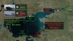Крым.Реалии провели свое наблюдение. Поскольку сесть на торговое судно и пройти под Керченским мостом возможности нет, выручает интернет – можно проследить за плавсредством онлайн. На навигационном сервисе MarineTraffic мы выбрали два корабля, которые из одного места, примерно в одно и то же время должны были пройти похожим маршрутом через Азовское море в Россию и в Украину.