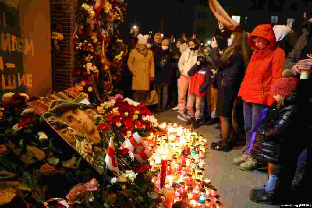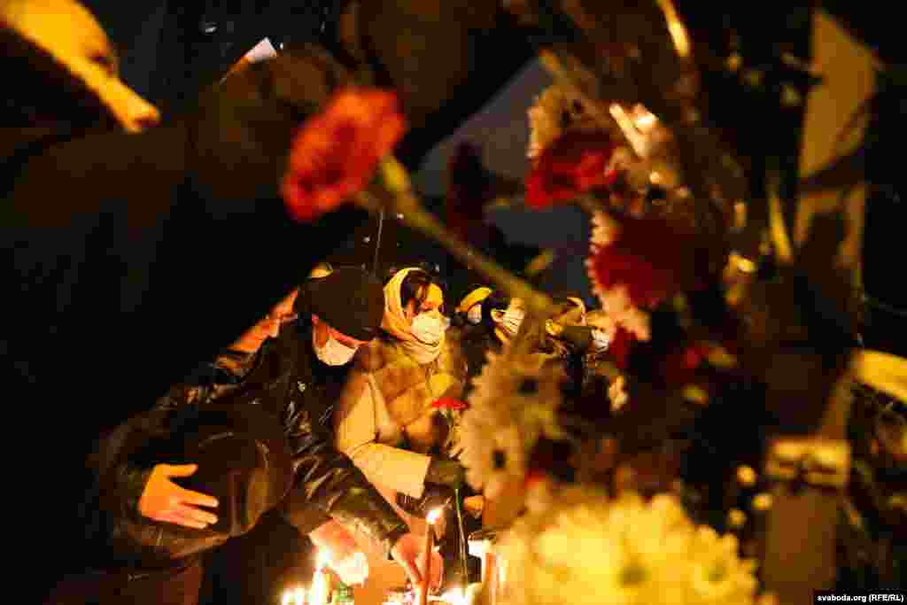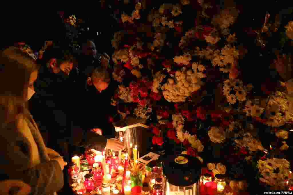 12 ноября в Минске после сообщения о смерти в реанимации белоруса Романа Бондаренко, на «Площади Перемен» начали собираться неравнодушные белорусы. Они несли цветы и свечи.