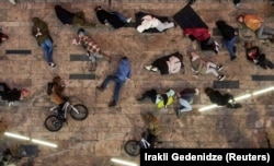 Акции протеста с требованием привлечь российское военное и политическое руководство к ответственности в связи с преступлениями в Буче проходили в разных странах мира весь предыдущий год. Участники этих акций зачастую пытались воспроизвести ставшие знаковыми фотографии с лежащими на улицах убитыми мирными жителями – как во время этого протеста в столице Грузии Тбилиси 6 апреля 2022 года.