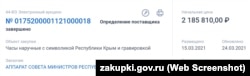 По информации российского портала госзакупок, в конце марта аппарат российского правительства Крыма закупил партию наградных наручных часов на сумму более двух миллионов рублей.