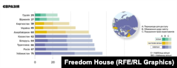 Украина, рейтинг которой авторы отчета Freedom House оценили в 45 баллов, за последние семь лет снизила показатели от свободной к «частично свободной».
