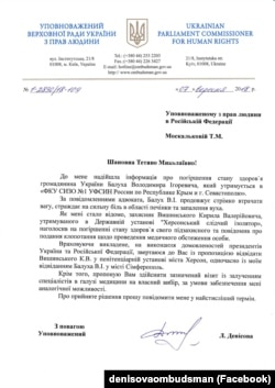 «Он стремительно худеет. У него сильная боль в печени и воспаление уха», – написала омбудсмен.