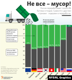 Работу в этом направлении ведут в основном общественные активисты, которые агитируют за то, чтобы стекло, бумага и пластик собирались в отдельные контейнеры. Подобная практика уже давно существует в странах Европы, где несоблюдение правил сортировки мусора может повлечь административную ответственность. В Бельгии, к примеру, в стоимость специального пластикового мешка для отходов уже вложена стоимость его транспортировки. Причем для каждого вида отходов есть мешок особого цвета.