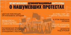 Собственно, большинство дезинформационных нарративов, направленных против народных протестов, были впервые введены прокремлевскими СМИ во время протестов на Майдане. Их изобразили как якобы «цветную революцию» и узурпацию власти, организованную и спонсированную Америкой и Европой, к которой подстрекали спецслужбы, которую разжигали неонацисты и русофобы, которая привела к экономическому и политическому хаосу.