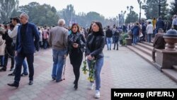 Звучит реквием, сотни людей продолжают нести цветы к телам погибших.