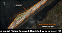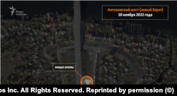 Перед отступлением из правобережной части Херсонской области российские войска вырыли окопы и соорудили укрепления для военной техники на левом берегу Днепра – об этом свидетельствуют спутниковые снимки, изученные Радио Свобода и расследовательским проектом "Схемы". Фотографии со спутника также подтверждают, что армия РФ взорвала несколько пролетов моста, ведущего к дамбе Каховской ГЭС.