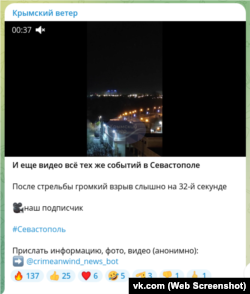 Первым сообщил о ночных взрывах телеграм-канал «Крымский ветер». «В Севастополе с интервалом в 8 минут раздались два мощных взрыва, которые было слышно в Гагаринском, Ленинском и Нахимовском районах города», – говорится в сообщении, опубликованном в 03.50.