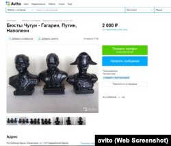 Вот такой чугунный бюст Владимира Путина предлагают купить за две тысячи рублей в Евпатории.