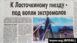 «Крымская правда» в статье «К Ласточкиному гнезду – под вопли экстремалов» рассказывает о новом развлечении для туристов возле известной южнобережной достопримечательности. «К одному из символов Крыма устанавливают троллей – металлический трос, на котором любой желающий может прокатиться с ветерком. Ласточкино гнездо лишь недавно открыли после масштабных реставрационных работ. Любоваться им теперь можно под крики пролетающих мимо не чаек, а людей», – пишет издание. Газета напоминает, что троллей над Ласточкиным гнездом уже был. Он работал в 2013 году. Он представлял собой скоростной спуск на ролике. Однако вскоре его демонтировали, так как многие высказались против.