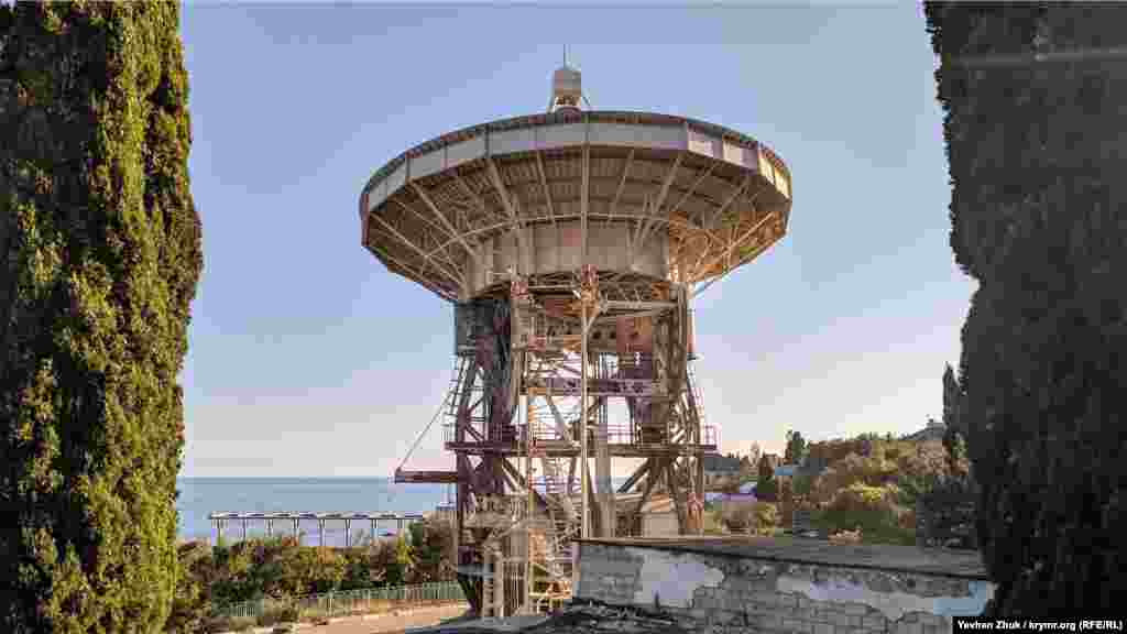 В крымском поселке Голубой Залив, что неподалеку от Симеиза, находится радиотелескоп РТ-22, построенный в 1967 году. Цифры обозначают диаметр параболического зеркала антенны – 22 метра.