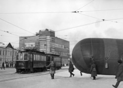 Бойцы противовоздушной обороны с аэростатом на площади Застава Ильича в дни обороны Москвы, 1941 год