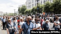 Короновирусные ограничения действуют в Хабаровском крае как минимум до 27 июля. Но ни они, ни съехавшиеся к месту митинга автозаки и наряды полиции протестующих не остановили. По ходу движения к ним присоединялись все новые и новые участники – в общей сложности в акции приняли участие как минимум 10 тысяч человек (по некоторым оценкам в несколько раз больше). Пройдя через площадь Ленина, люди двинулись прямо по проезжей части улиц Карла Маркса и Муравьева-Амурского до Комсомольской площади. Оттуда – до Уссурийского бульвара, площади Славы, а затем по ул. Ленина снова до исходной точки, к зданию регионального правительства. В колонне были люди всех возрастов, включая стариков и родителей с колясками.