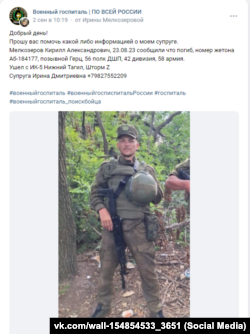 Читатели российского провоенного Telegram-канала «ВДВ за Теплинского» также сообщают в комментариях о том, что на поле боя в августе осталось много тел, которые не могут забрать. В тематических группах в соцсетях немало объявлений о розыске пропавших без вести из 56-го дшп. Крым.Реалии удалось найти 20 подобных сообщений в разных соцсетях. Разыскиваемые пропали без вести на Запорожском направлении, почти все – в период с начала и до середины августа 2023 года.