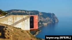 Остатки обоих мощных укреплений уцелели и после Второй мировой, несмотря на то, что после войны сооружения использовались как полигон для испытания авиабомб. Прогуляться к форту Южный – приятное и познавательное путешествие. Путь начинается с горы Крепостной, от развалин Генуэзской крепости Чембало. На фото – здания бывшей метеостанции, а между ними тропа, которая идет по оврагу Шайтан-Дере.