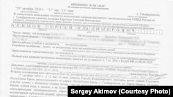 Крымский оппозиционный активист Сергей Акимов, у которого утром 29 октября провели обыск российские силовики, сообщил Крым.Реалии, что в протоколе по его делу есть ошибка, на которую он указал судье, но тот «не принял это во внимание».